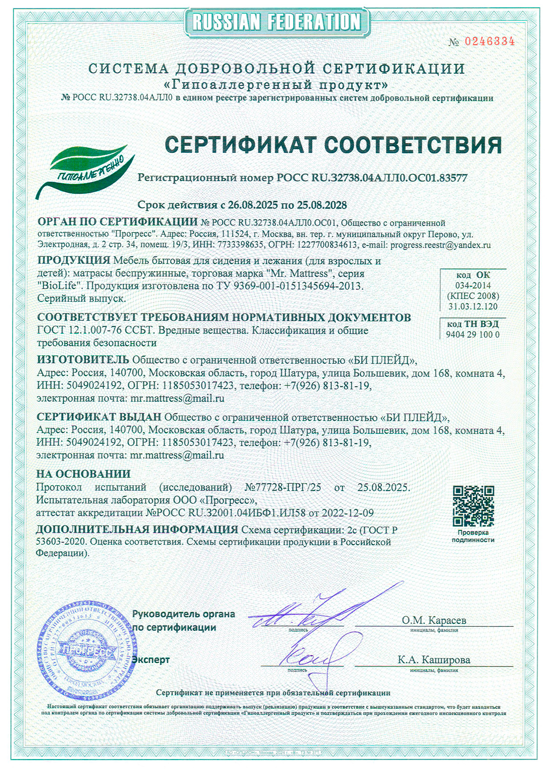 При выборе матраса из натуральных компонентов стоит обращать внимание и на его чехол. Очень важно правильное соответствие, поэтому чехлы испанских матрасов BioLife сделаны только из натурального хлопка. Съемный эксклюзивный чехол в клубную клетку Mr.Mattress, благодаря очень плотному переплетению хлопка придаёт матрасу мягкость и комфорт. Чехол легко поддается чистке и уходу, поэтому ваш матрас прослужит Вам еще дольше.